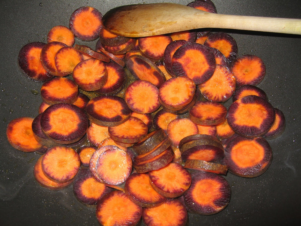 Carrot gets its characteristic and bright orange colour from β-carotene, which is metabolised into vitamin A in humans when bile salts are present in the intestines. Carrots are also rich in dietary fibre, antioxidants, and minerals.