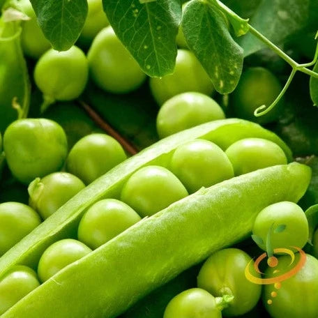 The Green Arrow Pea (Pisum sativum) is an old English heirloom shelling pea. A semi-dwarf frost-tolerant bush variety that grows to only 2'-3' tall and doesn't require staking. High yields for a compact plant. Produces lots of 4"-5" pods with 9-11 plump, tender, sweet peas inside. Delicious fresh or cooked, if you don’t eat them all before you make it into the house.