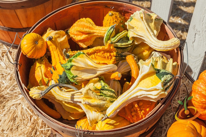 - Produces good yields of 5" diameter multi color gourds